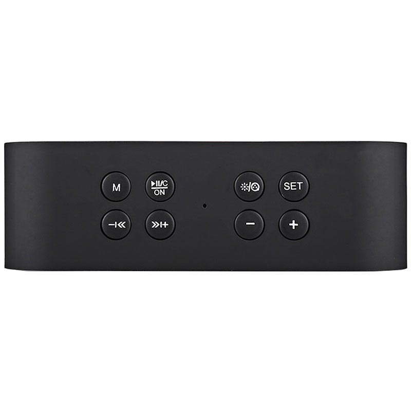 - Auf der Oberseite der AEC BT501 Lautsprecher / Uhr befinden sich Tasten zur Steuerung von Musik, Lautstärke, Anrufe