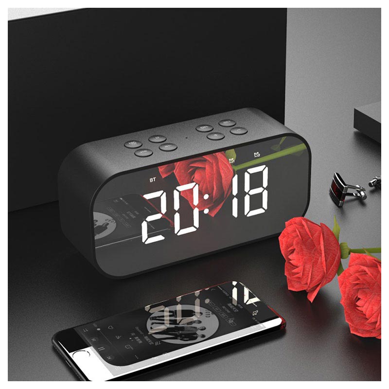 - Es fungiert als Bluetooth-Lautsprecher sowie eine Display-Uhr mit einer Alarmfunktion