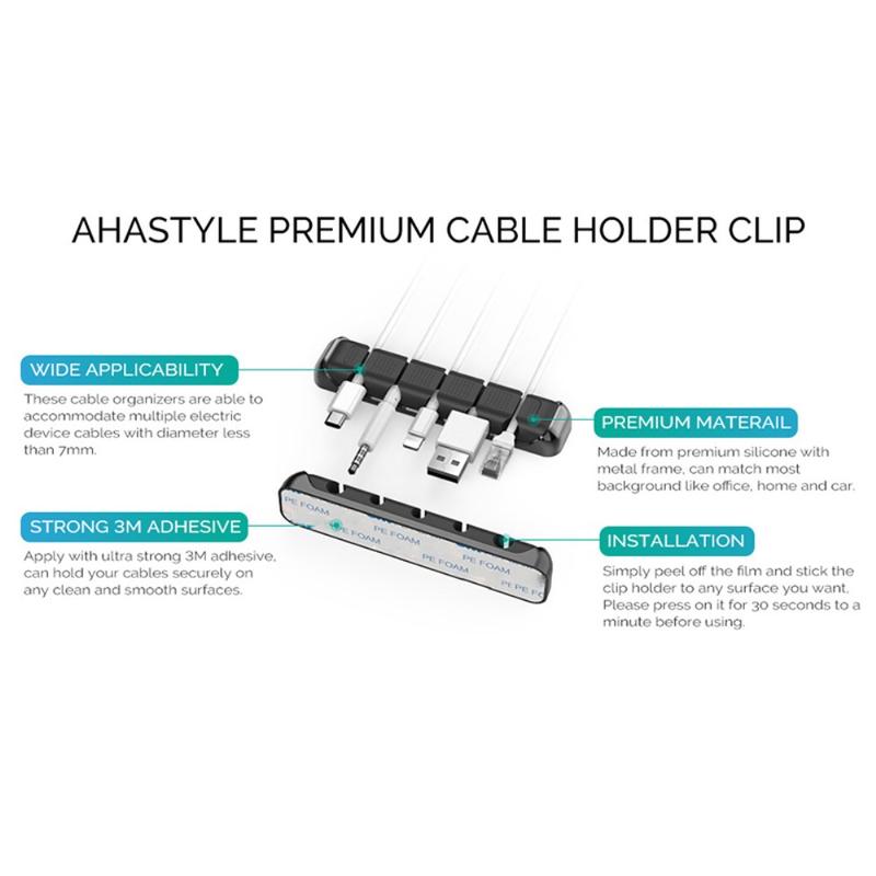 • AHASTYLE PT125 Aluminiumlegierung+Silikon Kabelorganisator Ladegerät Kabelmanagement 5-Slot Kabelhalter für Heim Büro Schreibtisch - Schwarz