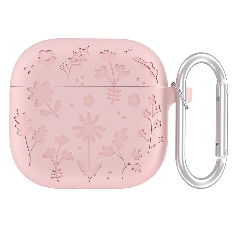 Blumenmuster Flüssigsilikonhülle mit Karabiner für AirPods 4