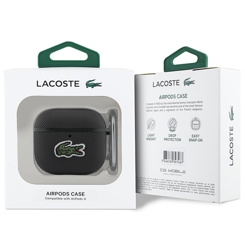 AirPods 4 Lacoste Klein Pique Croc Logo Patch Hülle - Schwarz