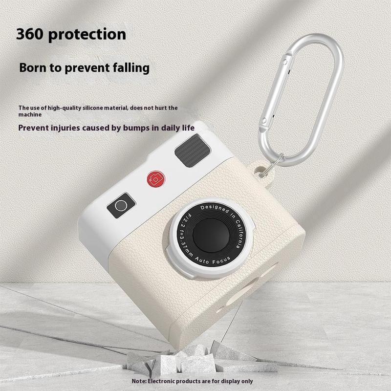 Diese Hülle ist eine perfekte Mischung aus Stil und Funktionalität. Sie bietet erstklassigen Schutz für deine AirPods 4 mit dem zusätzlichen Komfort der Unterstützung für kabelloses Laden und einem tragbaren Karabiner. Das Retro-Kamera-Design verleiht ihr einen auffälligen, nostalgischen Look.