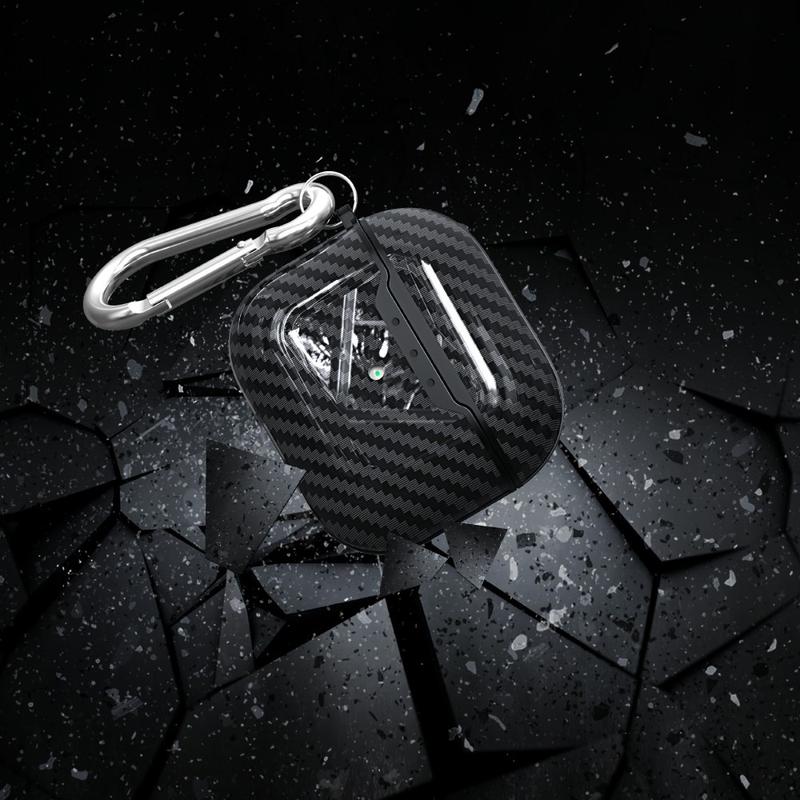 TPU-Hülle mit Karabiner für AirPods 4 - Kohlefaser