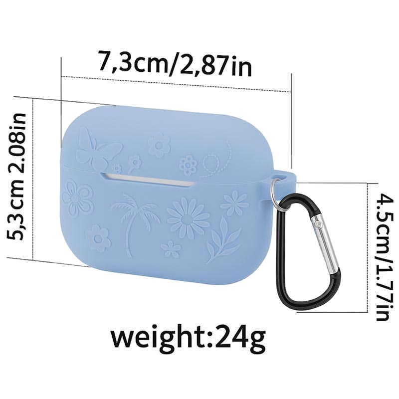 • Blumenmuster Flüssigsilikonhülle mit Karabiner für AirPods Pro 3