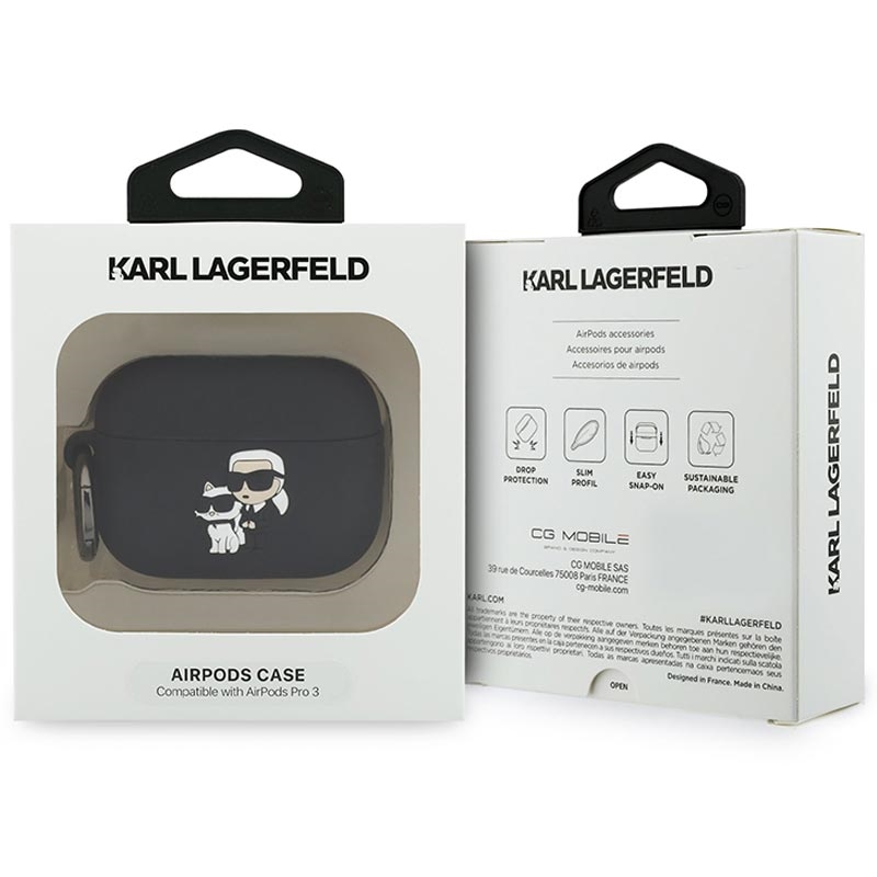 AirPods Pro 3 Karl Lagerfeld Karl & Choupette 3D-Silikonhülle - Schwarz