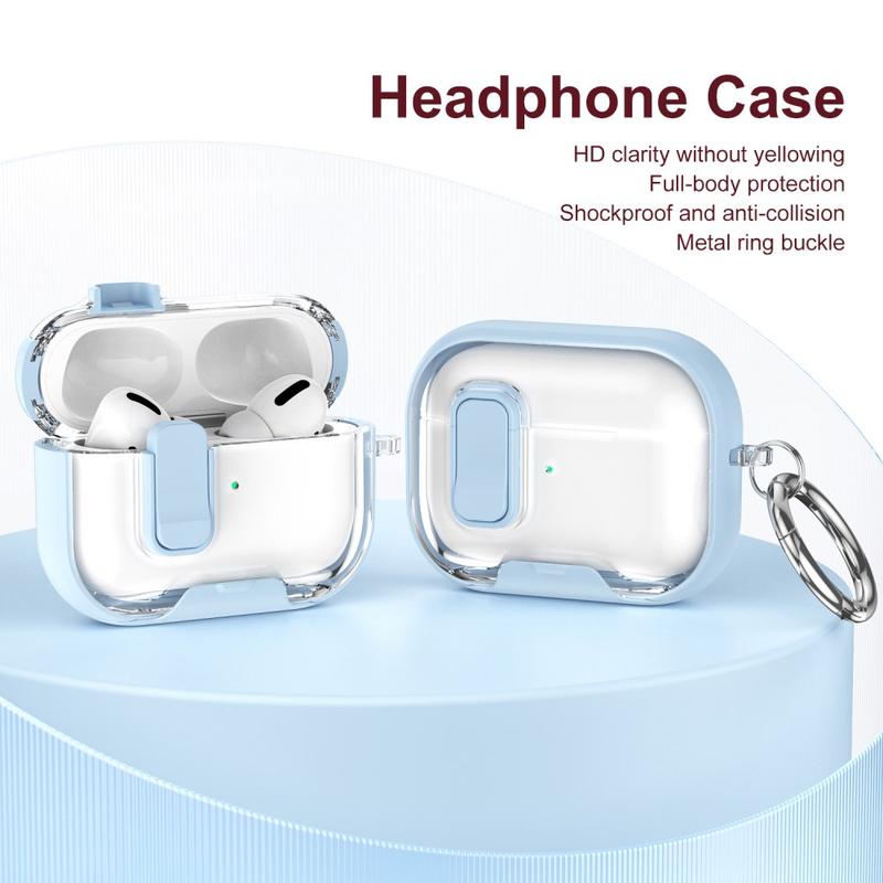 AirPods Pro Hybrid-Schutzhülle mit Verschluss und Haken - Hellblau / Durchsichtig