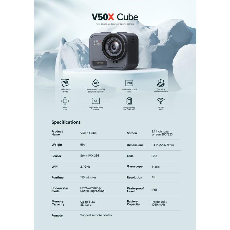 Erleben Sie den Nervenkitzel Ihrer Abenteuer mit der AKASO V50 X Cube Action Camera. Diese kompakte und dennoch leistungsstarke Kamera wurde für Outdoor-Enthusiasten und Sportbegeisterte entwickelt und liefert eine außergewöhnliche Video- und Fotoqualität, die sicherstellt, dass jeder Moment in lebendigen Details festgehalten wird.