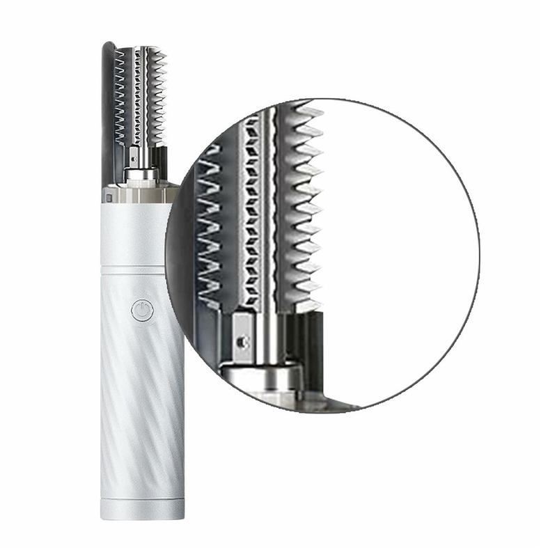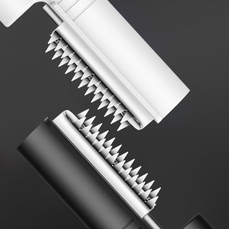 - Zweireihige, gezackte Klingen aus Edelstahl für effizientes Entfernen der Schuppen