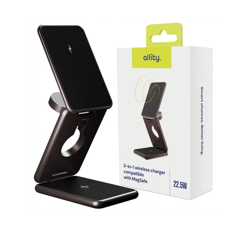 Allity AWC-230-225WMS 3-in-1 MagSafe Wireless Ladegerät 22.5W - faltbare Dockingstation für iPhone, Apple Watch & AirPods