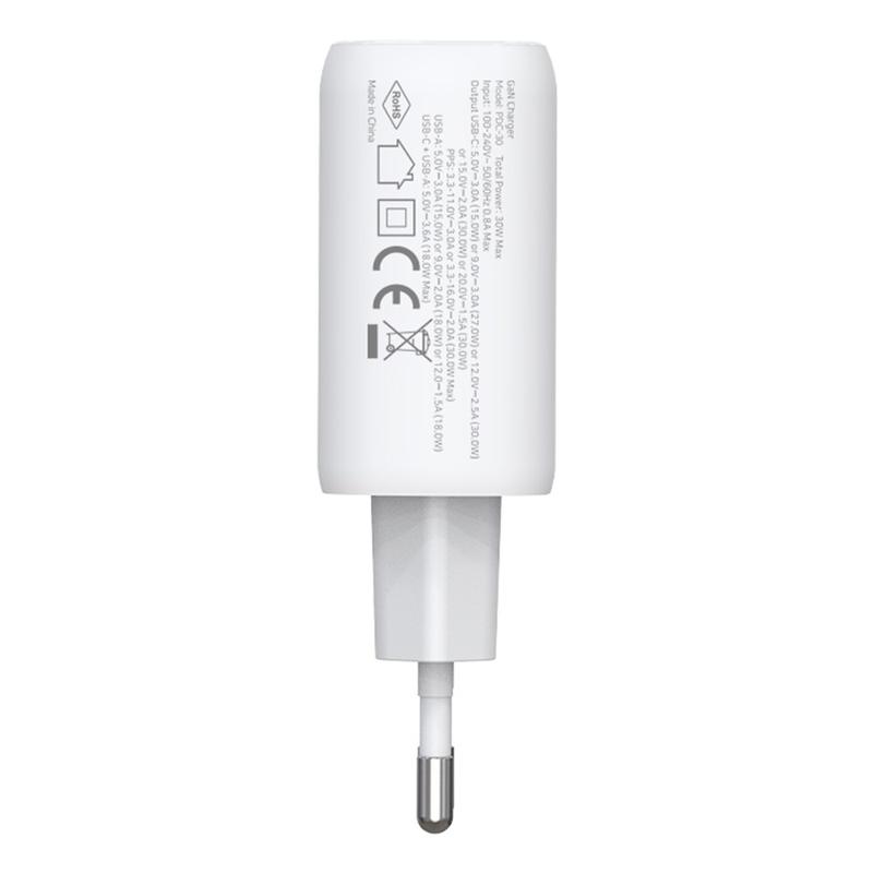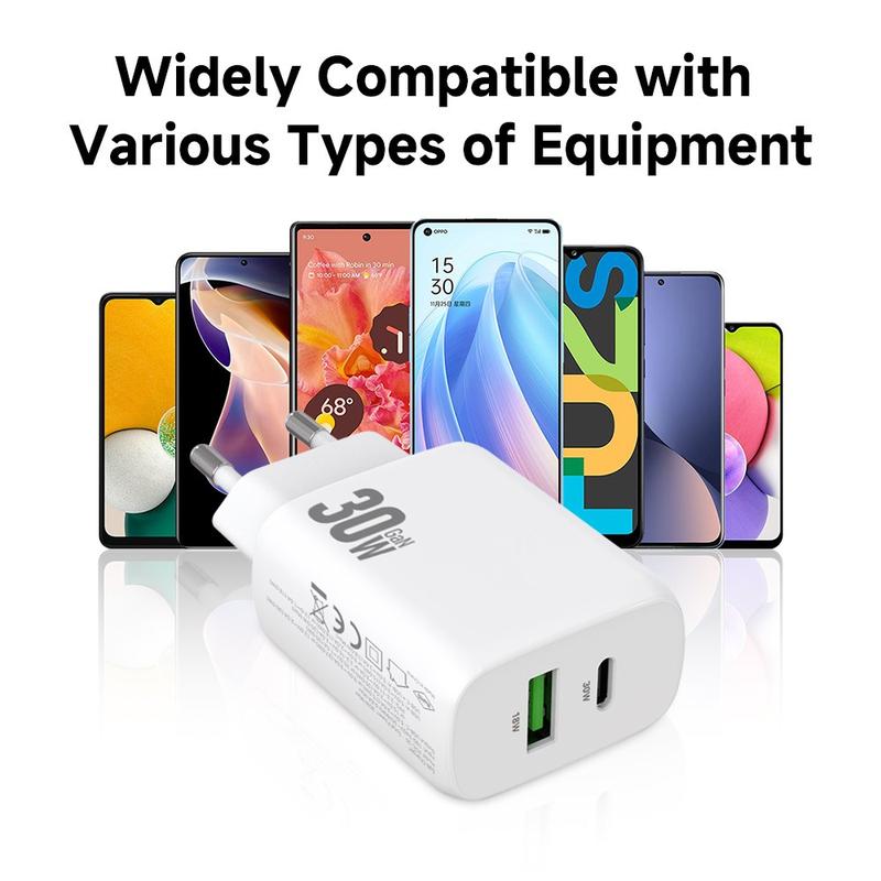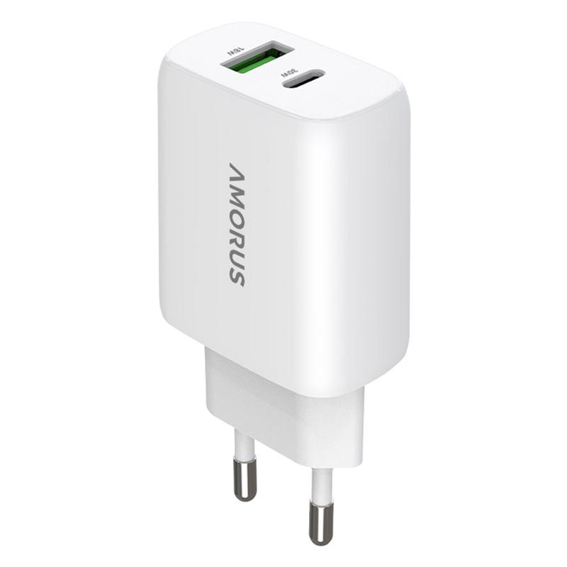 AMORUS 30W GaN Schnelles Wandladegerät - USB-C PD und USB-A QC Wandadapter, EU Stecker