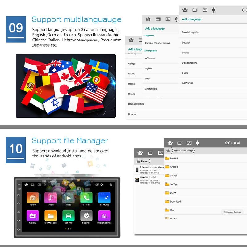 • Android 11 Autoradio mit GPS-Navigation, WiFi, Bluetooth R-730 - 16GB - 7"