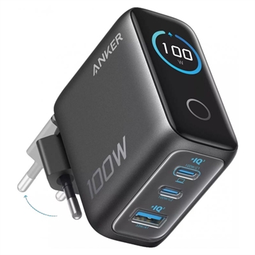 Anker 100W GaN-Wandladegerät mit Smart-Display und USB-C-Kabel - Schnellladegerät mit 2 USB-C- und 1 USB-A-Anschluss