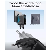 Eines der herausragenden Merkmale ist das Smart-Display, das Ladeinformationen wie Ausgangsleistung, Ladestatus, Temperatur und Stromverteilung in Echtzeit anzeigt. So erhalten Sie einen besseren Überblick darüber, wie Ihre Geräte geladen werden. In Kombination mit dem klappbaren Stecker und dem kompakten Gehäuse lässt sich das Ladegerät zudem bequem zur Arbeit, auf Reisen und im Alltag mitnehmen.