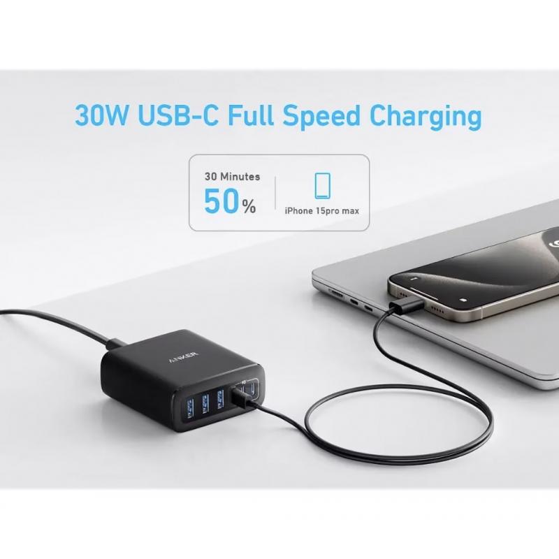 - Dedizierter 30-W-USB-C1-Anschluss - lädt ein 13-Zoll- oder 14-Zoll-Notebook in etwa 1 h 40 min auf 50 % auf.