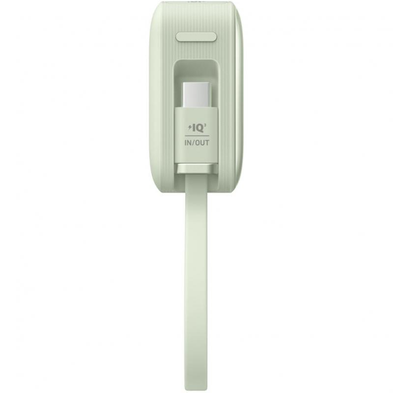 - Integriertes USB-C-Kabel - immer angeschlossen, immer bereit; dient auch als Eingangskabel zum Aufladen der Bank.