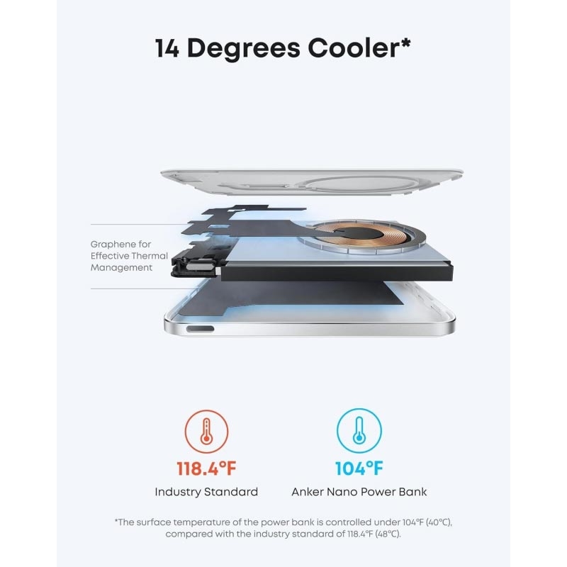 Die Anker Nano Power Bank wurde für Nutzer entwickelt, die schnelles, sicheres Laden ohne eine sperrige Powerbank wünschen. Dank der magnetischen Befestigung ist das Laden einfach und kabellos, während der USB-C-Anschluss zusätzliche Flexibilität bietet, wenn schnelleres kabelgebundenes Laden erforderlich ist. Mit fortschrittlichen Kühl- und Sicherheitsfunktionen liefert sie zuverlässige Leistung in einem kompakten, hochwertigen Design.