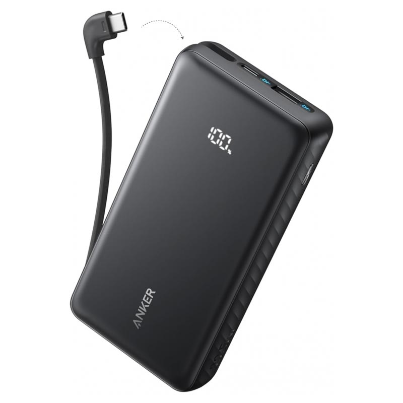 Anker Zolo 10000mAh Powerbank - tragbares Ladegerät mit 22.5W, integriertem USB-C-Kabel sowie QC- und PD-Schnellladefunktion