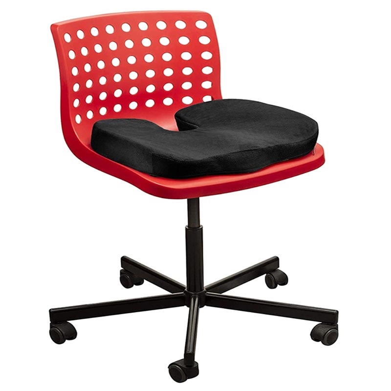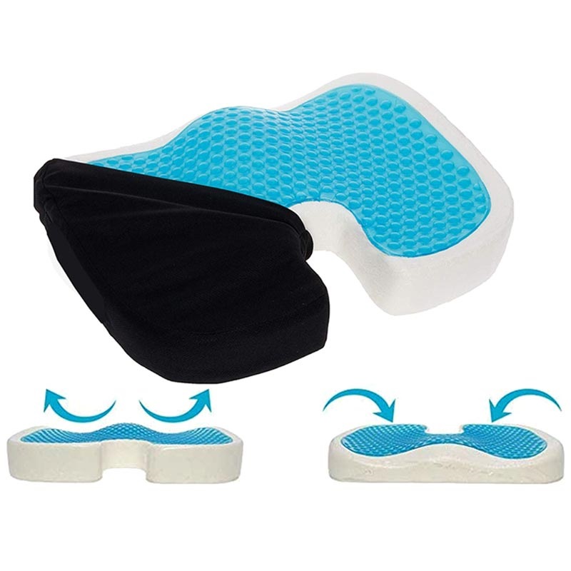 Dieses sehr bequeme und praktische Sitzkissen enthält eine Gelschicht und eine Mischung aus Memory-Schaum, die den Druck auf den unteren Rücken und die Wirbelsäule verringert. Was es von anderen großen Kissen unterscheidet, ist, dass dieses Kissen Ihnen helfen kann, eine gesunde Haltung während des Sitzens aufrechtzuerhalten, indem es die Blutzirkulation und die Ausrichtung der Wirbelsäule fördert, was es Ihnen ermöglicht, sich besser auf die Arbeit oder eine lange Fahrzeit zu konzentrieren. Das kühlende Gel leitet die Körperwärme ab, damit Sie sich entspannen und wohlfühlen können, während das U-förmige Design an den richtigen Stellen Druck absorbiert und Schmerzen lindert.