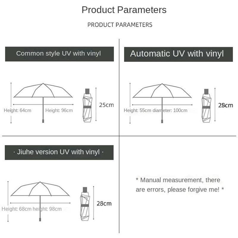 Mit diesem UV-beständigen, faltbaren Regenschirm sind Sie auf plötzliche Regenschauer und starke Sonneneinstrahlung vorbereitet. Das kompakte, dreifach faltbare Design passt leicht in einen Rucksack, eine Aktentasche oder das Handschuhfach im Auto und ist somit ideal für Pendler, Reisende und Outdoor-Tage. Mit 8 starken Rippen, wasserdichtem Gewebe und einer Schutzbeschichtung ist er für den regelmäßigen Gebrauch ausgelegt und bietet zuverlässigen Schutz. Entscheiden Sie sich für die Version mit automatischer Öffnung, die sich bei einsetzendem Regen schnell mit einer Hand öffnen lässt, und für einen ergonomischen Griff mit Ring für bequemes Tragen.