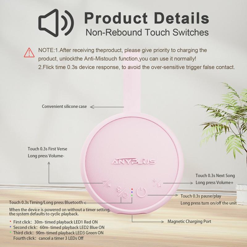 - Timer-Einstellungen: Bietet 30-, 60- oder 90-minütige Timer-Optionen und schaltet Töne und Nachtlicht nach der eingestellten Zeit automatisch aus.