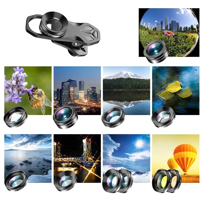 Machen Sie mit diesem Apexel 11-in-1 Universal Kameraobjektiv Kit außergewöhnliche Bilder wie ein Profi. Sie bieten Ihnen zahlreiche Optionen, die sich hervorragend für Landschafts-, Selbstporträts und Gruppenfotos eignen. Mit diesem universellen Kameraobjektiv-Kit können Sie die Stimmung ändern und eine breitere Sicht auf Ihre Fotos erhalten.