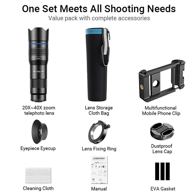 APEXEL HD Metall 20-40x Zoom Teleskop Teleobjektiv Monokular Telefonkamera Objektiv für iPhone Samsung Huawei