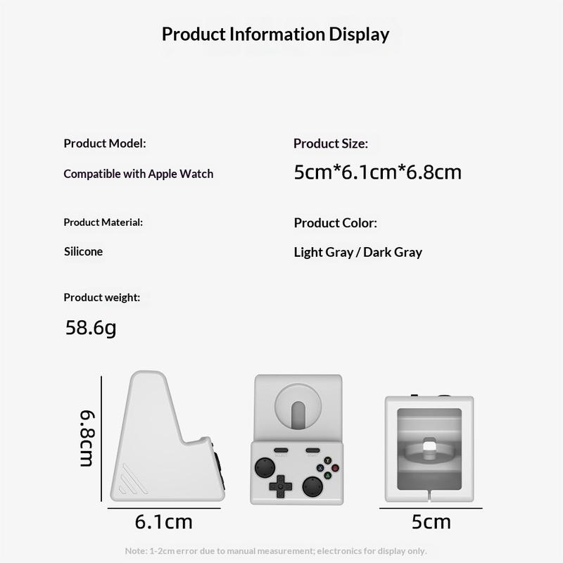 Verleihen Sie Ihrem Nachttisch oder Schreibtisch mit diesem Ladeständer für die Apple Watch im Stil einer Spielkonsole eine lustige und ordentliche Aufwertung. Er besteht aus weichem, kratzfestem Silikon, hält Ihre Uhr während des Ladevorgangs sicher an ihrem Platz und sorgt dank der integrierten Kabelaufbewahrung an der Unterseite für Ordnung. Dank seiner kompakten Größe lässt er sich leicht zwischen Zuhause, Büro oder auf Reisen transportieren, während sein minimalistisches Design sich natürlich in moderne Innenräume einfügt.