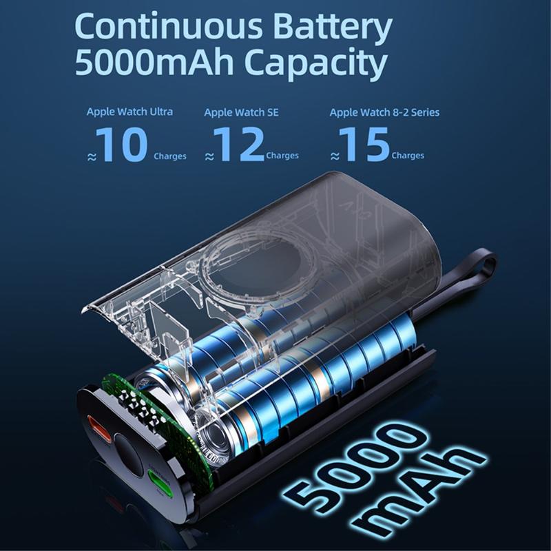 • V10A Tragbare Powerbank für Apple Watch, 5000mAh - Magnetisches kabelloses Ladegerät mit PD 20 W USB-C-Schnellladefunktion