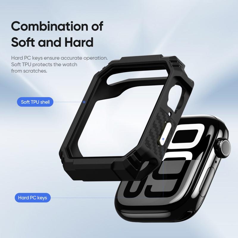 Das Dux Ducis Damo Series Watch Case für die Apple Watch Series 11/10 verbindet Stil mit Schutz und sorgt dafür, dass Ihre Smartwatch bei täglichen Aktivitäten sicher und kratzfrei bleibt. Diese PC+TPU-Hülle ist so gestaltet, dass sie Stöße absorbiert und Schäden durch versehentliches Fallenlassen verhindert, während der Zugang zu Tasten und Sensoren erhalten bleibt.