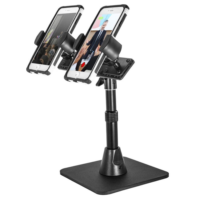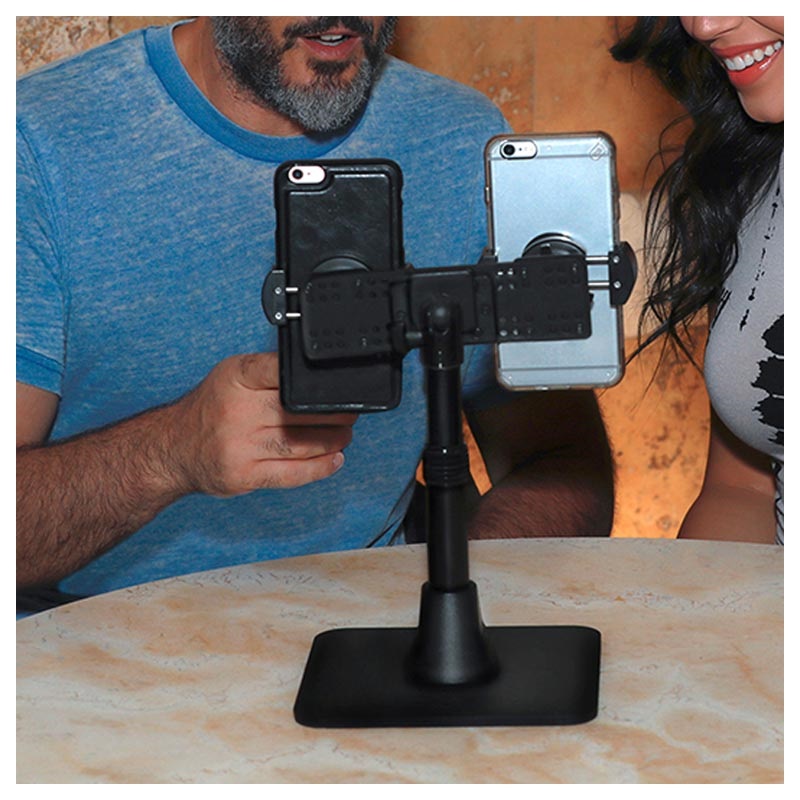 Mit dem TW Broadcaster Pro TWBHD8RV2 Desktop-Halter von Arkon sind bis zu 2 Smartphones zugänglich.