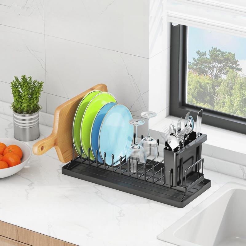Dieser Geschirrständer bietet Vielseitigkeit, Haltbarkeit und platzsparendes Design in einer kompakten Einheit. Seine erweiterbare Struktur und die vielseitig einsetzbare Trockenschale machen ihn perfekt für kleine Küchen, während die Konstruktion aus Karbonstahl für langfristige Zuverlässigkeit sorgt. Einfach zu montieren, leicht zu reinigen und äußerst praktisch - ein cleveres Upgrade für jede Küche.