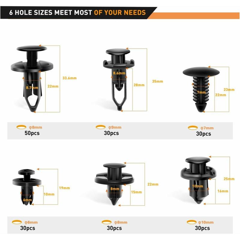 Mit sechs Größen, 200 Teilen und einem praktischen Abreißwerkzeug haben Sie alles, was Sie für routinemäßige Reparaturen am Auto brauchen - und müssen nicht mehr in Ersatzteilläden nach fehlenden Clips suchen. Die universelle Kompatibilität und die robuste Konstruktion machen es zu einem Muss für jeden, der bei der Pflege seines Autos Zeit und Ärger sparen möchte.