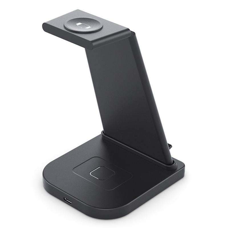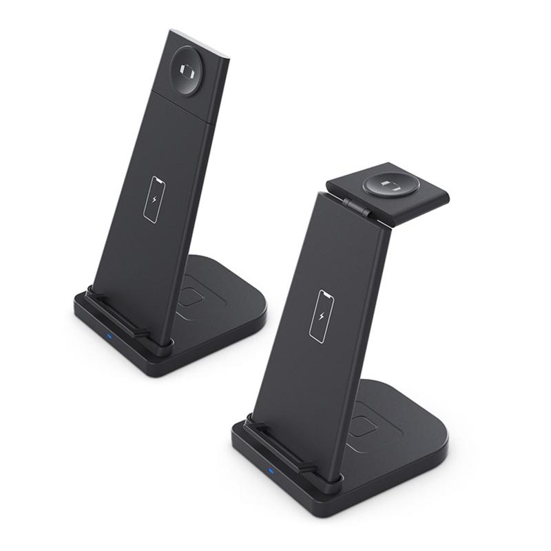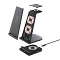 B-12 Universal Desktop Charger 3-in-1 15W Wireless Charging Folding Stand für Handy / Kopfhörer / Smart Watch - Schwarz