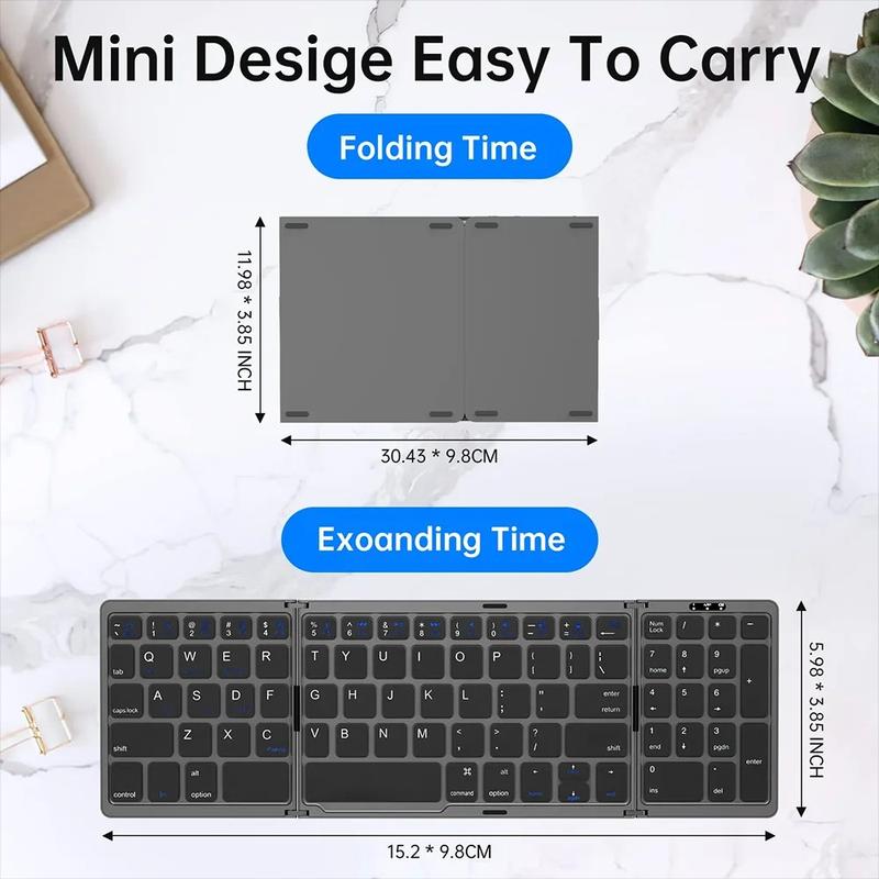 B089 Tragbare, dreifach zusammenklappbare Bluetooth-Tastatur mit Ziffernblock - kabellose Tastatur mit 81 Tasten für Zuhause, Büro, Tablet und Smartphone