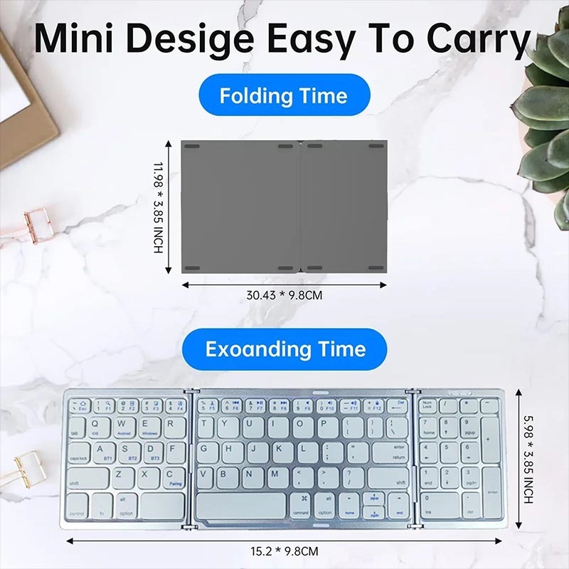 Arbeiten Sie überall bequemer mit der tragbaren, dreifach faltbaren Bluetooth-Tastatur B089. Diese kompakte, kabellose Tastatur wurde für den flexiblen Alltagseinsatz entwickelt und lässt sich zu einem praktischen Tastaturlayout in Standardgröße mit separatem Ziffernblock aufklappen; bei Nichtgebrauch lässt sie sich wieder zu einem kleineren, reisefreundlichen Format zusammenklappen. Sie ist eine hervorragende Wahl für mobiles Arbeiten, das Studium, Geschäftsreisen, den Weg zur Arbeit und das Homeoffice.