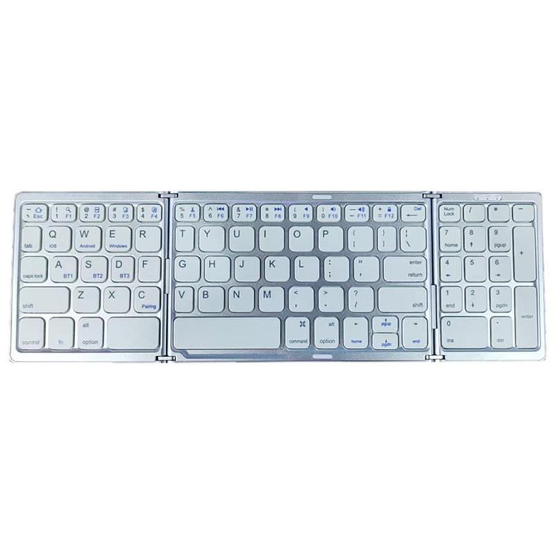 B089 Tragbare, dreifach zusammenklappbare Bluetooth-Tastatur mit Ziffernblock - kabellose Tastatur mit 81 Tasten für Zuhause, Büro, Tablet und Smartphone