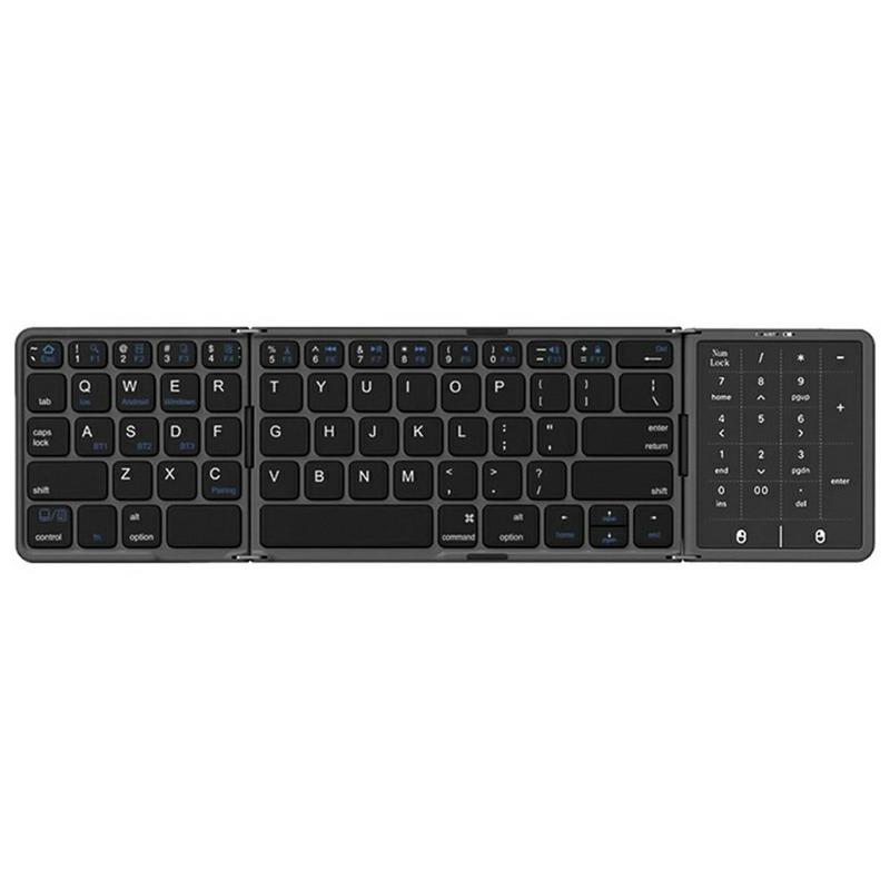 B089 ST - Ultradünne, dreifach zusammenklappbare Bluetooth-Tastatur mit Smart Trackpad / Tragbare kabellose Tastatur für iOS, Android und Windows