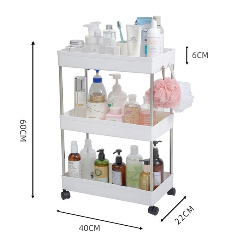 Dieses Aufbewahrungsregal bietet die perfekte Balance aus Haltbarkeit, Mobilität und platzsparendem Design. Die stabilen Einlegeböden und die praktischen Räder erleichtern die Ordnung im Badezimmer, während die kompakte Grundfläche mühelos in enge Räume passt. Eine intelligente, funktionale Ergänzung für jedes Zuhause.