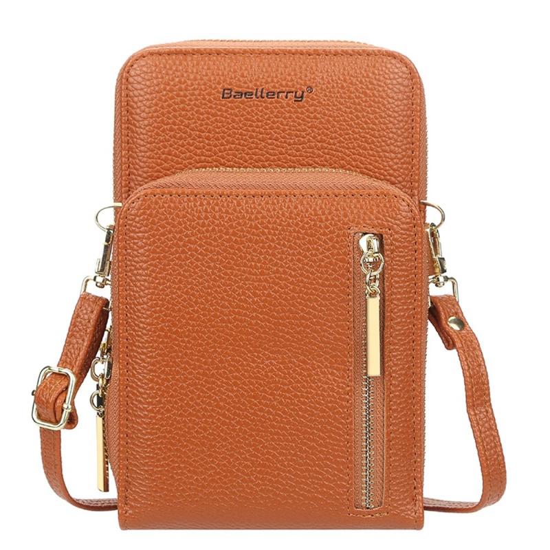• BAELLERRY N0110 Women Double Layer Zipper Wallet PU Leather Cellphone Purse with Shoulder Strap - Brown
