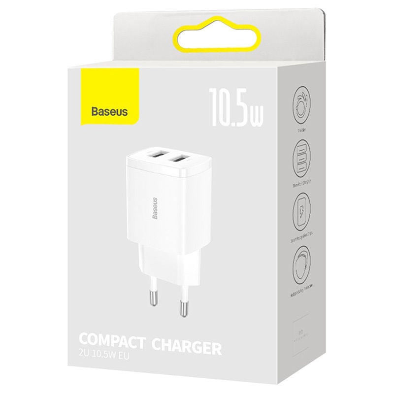 • Baseus Kompaktes Wand-Ladegerät mit 2 USB-Anschlüssen - 10.5W - EU-Stecker