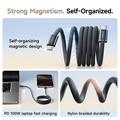 - Magnetisches selbstorganisierendes Design: Hält Ihr Kabel ordentlich aufgerollt, um Verwicklungen und Unordnung zu vermeiden.