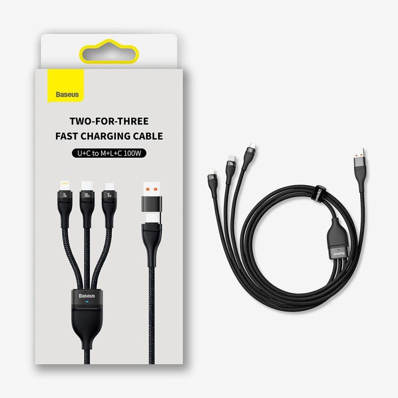 • Baseus Flash Series II 100W 3-in-2-Schnellladekabel - 1.2m - USB-A- und USB-C-Eingang zu USB-C Lightning und Micro-USB, nylonummantelt