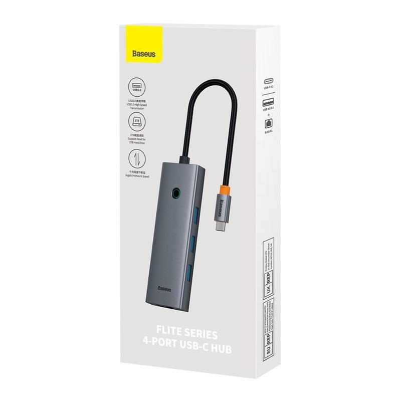 Baseus Flite BS-OH109 4-in-1 USB-C Hub - 3xUSB 3.0, RJ45 Ethernet Port - Space Grau
