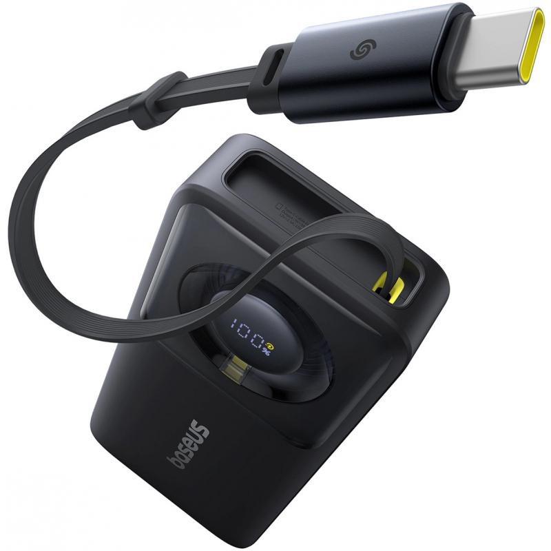 Baseus Free2Pull 10000mAh Power Bank mit USB-C Kabel - 30W PD Fast-Charge mit 70 cm ausziehbarem USB-C Kabel & Dual-Device Ausgang