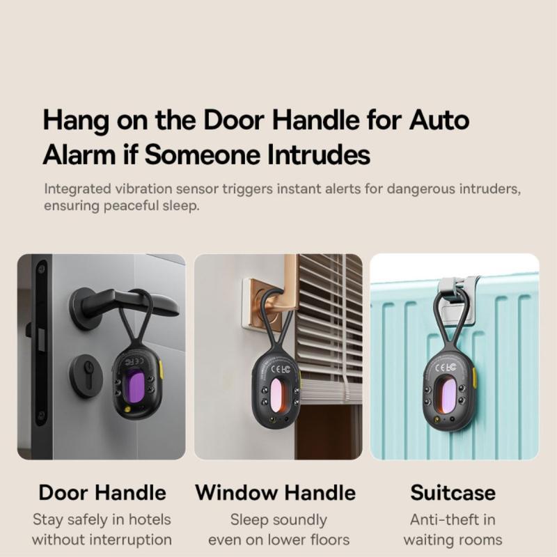 - Sicherheit in der Nacht: Hängen Sie es an Ihren Türgriff, um einen Alarm auszulösen, wenn jemand versucht, unerwartet einzutreten.