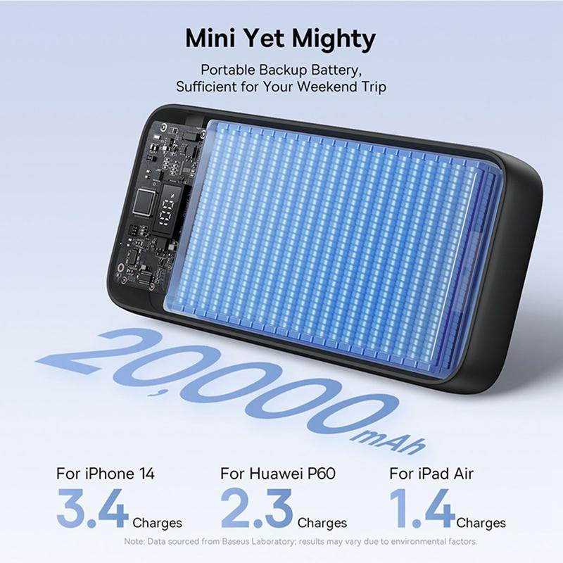 Die Baseus Lipow kombiniert hohe Kapazität, schnelles Aufladen und integrierte Vielseitigkeit und ist die ultimative Lösung, um immer mit Strom versorgt zu sein. Sein leichtes Design und seine benutzerfreundlichen Funktionen machen ihn zu einem hervorragenden Begleiter für das moderne Leben.
