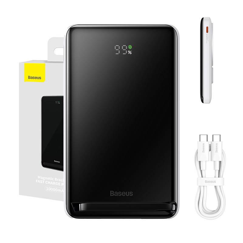 Rüsten Sie sich mit der geräumigen Baseus Magnetic Powerbank aus, die über einen USB-C-Anschluss verfügt und auch schnelles und sicheres kabelloses Laden mit einer maximalen Leistung von 15W ermöglicht. Die Powerbank unterstützt das PD 20W-Schnellladeprotokoll und hat eine Kapazität von bis zu 10.000 mAh. Ein praktisches Display informiert über den Akkustand und dank des klappbaren Ständers lässt sich das Produkt auch gut als Handyhalterung nutzen.