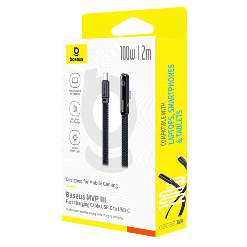 Baseus MVP 3 Schnelllade-USB-C-auf-USB-C-Kabel mit gebogenem Anschluss - 100W, 480Mbps