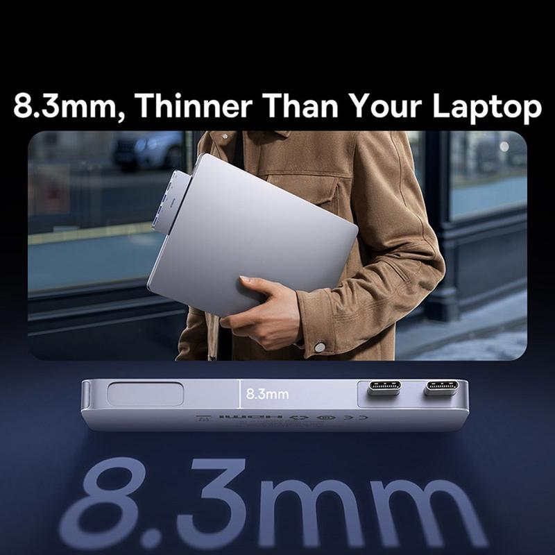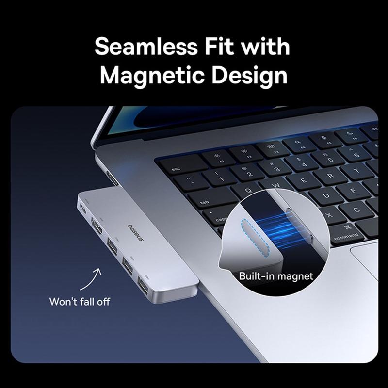 Der BASEUS UltraJoy 40Gbps USB-C Multiport Hub bietet alles, was Sie für einen übersichtlichen, leistungsstarken Arbeitsbereich benötigen. Seine rasanten Übertragungsgeschwindigkeiten, die robuste Stromversorgung und die vielseitige Anschlussauswahl machen ihn zum ultimativen Begleiter für tägliche Aufgaben oder anspruchsvolle kreative Projekte. Das magnetische Design bietet zusätzlichen Komfort und sorgt für eine stabile, organisierte Einrichtung, wo immer Sie sind.