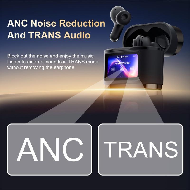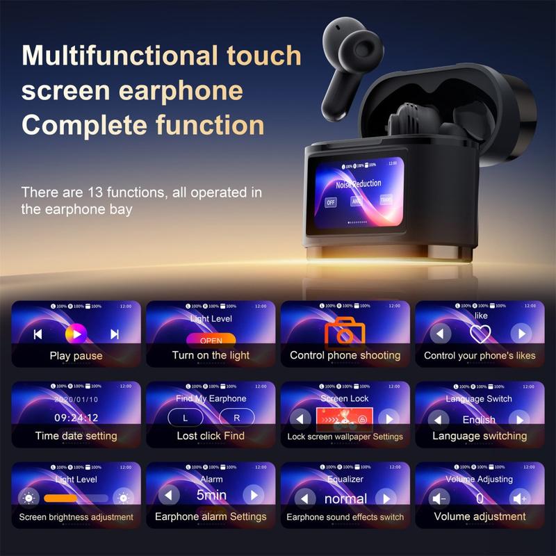 BD2 Smart Digital Display Wireless Kopfhörer / TWS Ohrhörer mit Ladeetui - Touchscreen, ANC & ENC Noise Cancelling